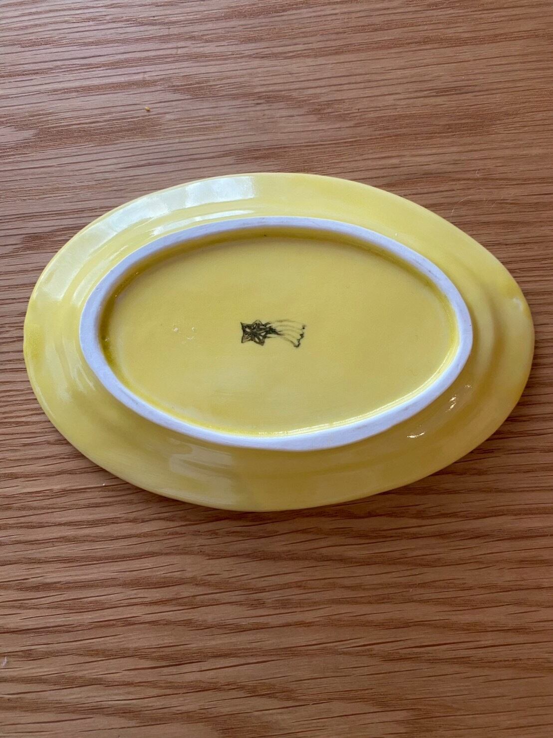 オーバル印判豆皿 Yellow 木人 花 健康